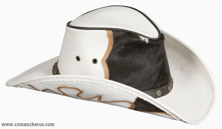 Un tripudio di pelle bianca per questo cappello stile country monocolore, profilato nella parte superiore. La pelle è di prima scelta, con treccia coordinata. I fori laterali garantiscono la corretta traspirazione. La falda larga personalizzabile completa le caratteristiche di questo prodotto 100% Comancheros.